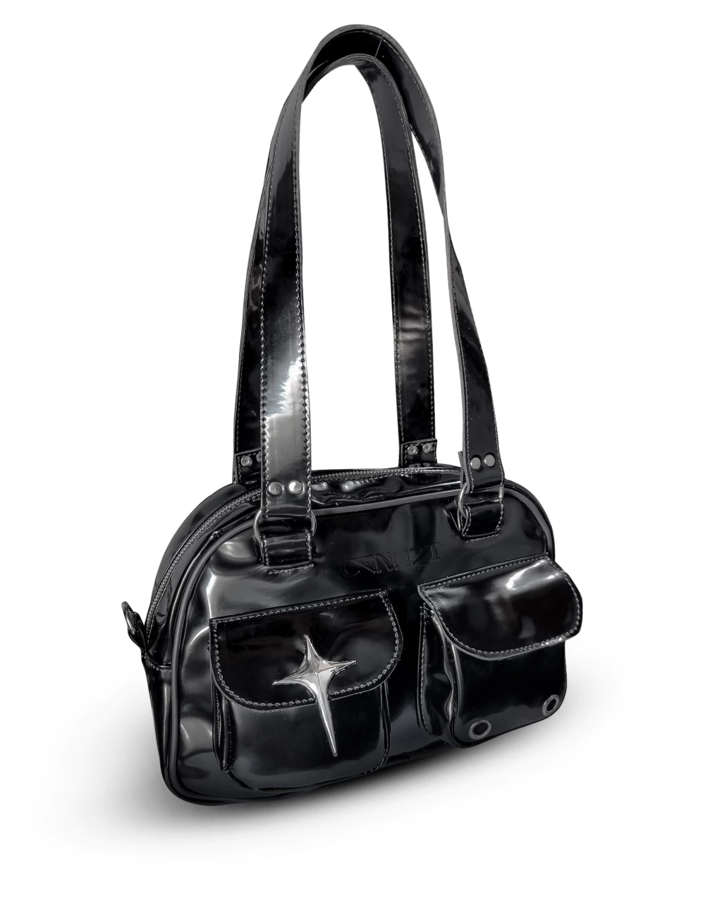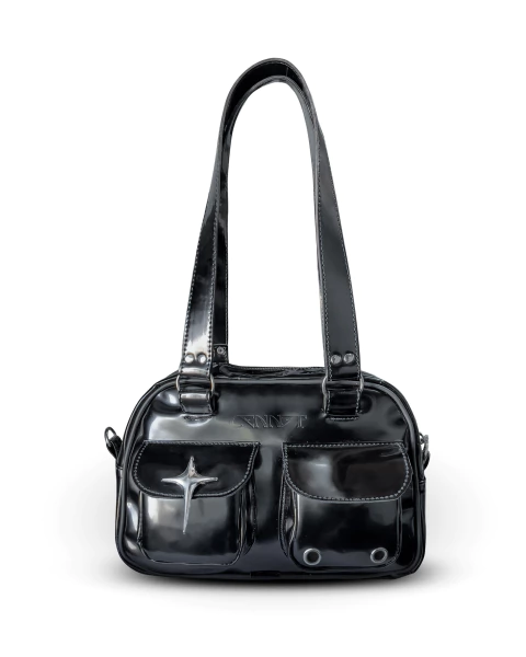 Ideal para mis girls que buscan un bolso diferente, versátil y con detalles únicos. El frente con doble bolsillo suma practicidad, y el acabado charol lo convierte en un infaltable.
