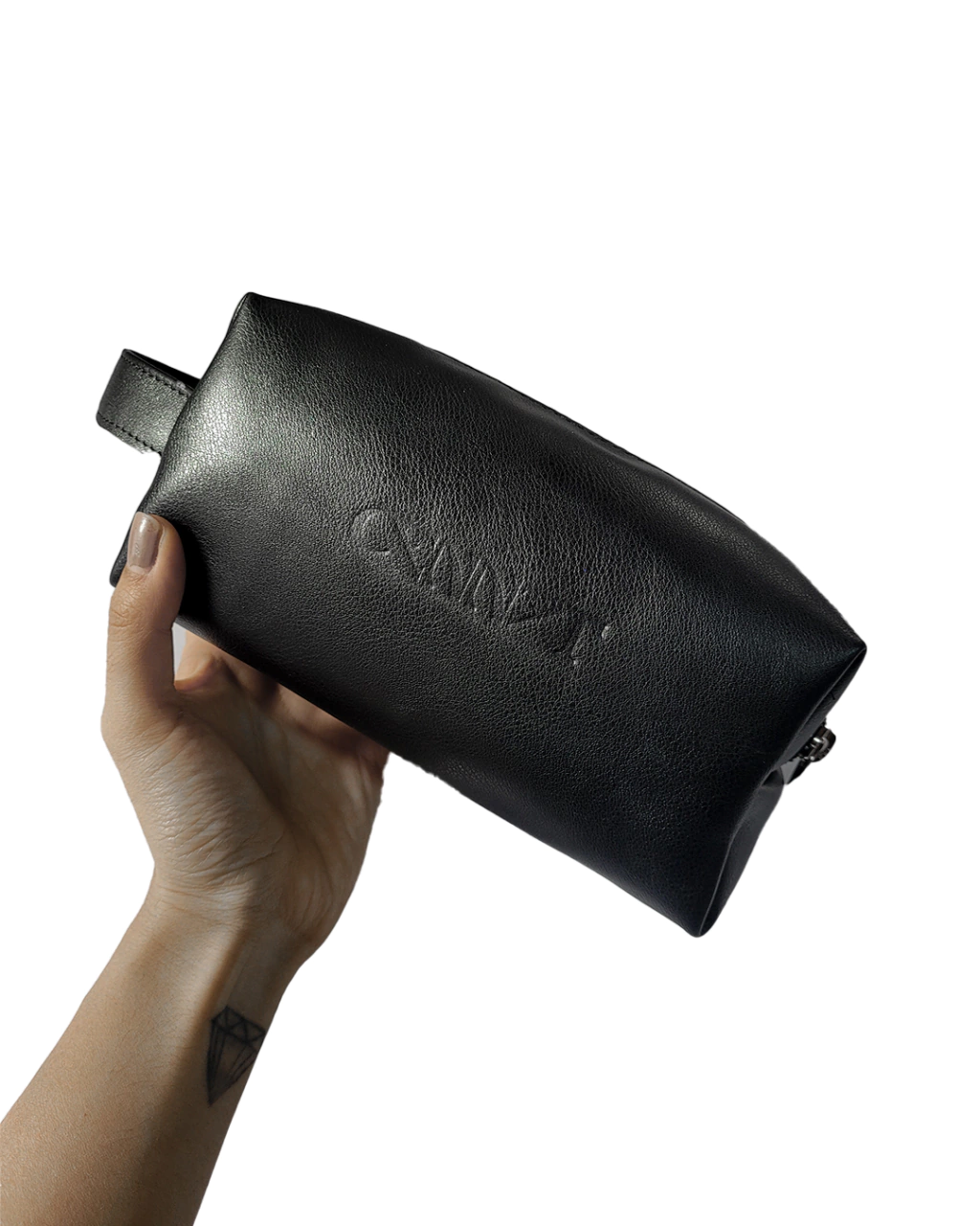 Diseño limpio. Este neceser está confeccionado en cuero sintético de alta calidad con textura suave y un acabado mate elegante. El logo está grabado en relieve, es un look;)